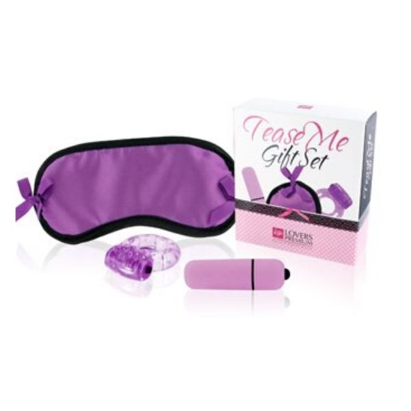 Set de tachinare senzuală care constă în mască de ochi, inel vibrator și vibrator tip bullet. Leagă-ți partenerul la ochi și stimulează-i toate părțile corpului folosind jucăriile vibratoare.
